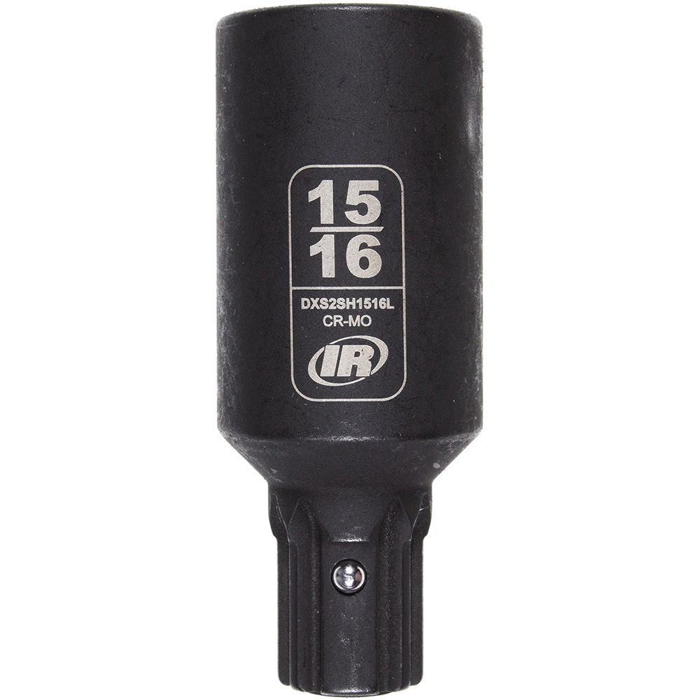 Ingersoll Rand DXS2 SAE Sockets are engineered with the innovative Drive Xchange System™ to deliver superior performance in demanding environments. These impact-grade sockets offer up to 15% more torque efficiency and 20% longer wear life compared to traditional square drive sockets. Constructed from high-strength chrome-molybdenum (CR-MO) alloy steel with a manganese phosphate finish, they resist corrosion and wear for extended durability. Each socket includes a ball nose retention pin for quick, tool-free changes and laser-etched size markings for easy identification.
