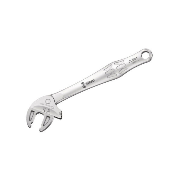 05020101001 Wera 6004 Joker L Self-Setting Spanner Wrench. Wrench Size: 16-19mm Joker Wrench: 5/8”-3/4” Total Length: 224mm Head Thickness: 14mm
