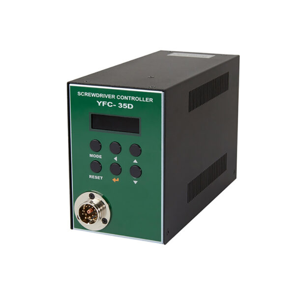 145877 Mountz YFC-35D Controller The 145877 Mountz YFC-35D Controller is an advanced tool specifically engineered for high torque manufacturing applications and is compatible exclusively with YF-series electric screwdrivers. This controller boasts a programmable three-step multi-sequence mode tailored for various fastening applications.