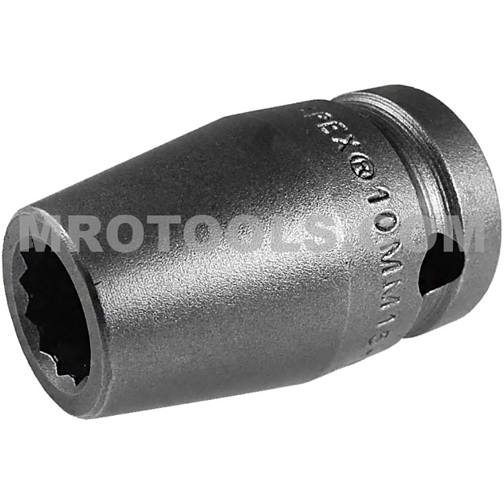 16MM15-D Apex® Brand 16mm 12-Point Metric Standard Impact Socket, 1/2” Square Drive. Socket Type: 12-Point Hex Opening: 16mm Overall Length: 38.1mm Nose End Diameter: 25.4mm Drive End Diameter: 25.4mm Opening Depth: 11.1mm