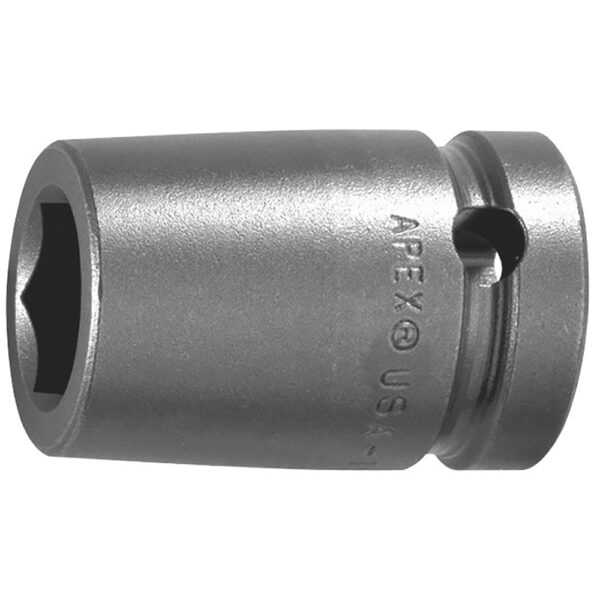17MM15-D Apex® Brand 17mm 12-Point Metric Standard Impact Socket, 1/2” Square Drive. Socket Type: 12-Point Hex Opening: 17mm Overall Length: 38.1mm Nose End Diameter: 28.6mm Drive End Diameter: 28.6mm Opening Depth: 11.1mm