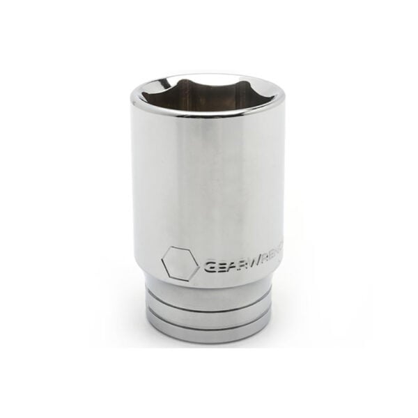 The 82442 GearWrench 3/4” Drive 6 Point Deep SAE Socket 1” exemplifies the brand’s commitment to quality and functionality. This socket features a full polish chrome finish that ensures both durability and ease of cleaning. Designed for SAE (double line) fasteners, it has large, hard-stamped markings for quick size identification. The off-corner loading design of the socket reduces fastener rounding while improving durability.