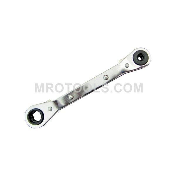 Lang square drive air conditioning and refrigerator ratcheting box wrench. 4-in-1 Ratchet Sizes: 1/4” x 3/16” Square X 1/2”x 9/16” 6 Point Overall Length: 7”