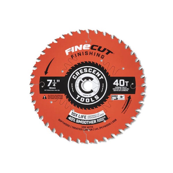Crescent CSBFN-740-10 7-1/4” x 40-Tooth FineCut Finishing Circular Saw Blade – 10 Pack Description: