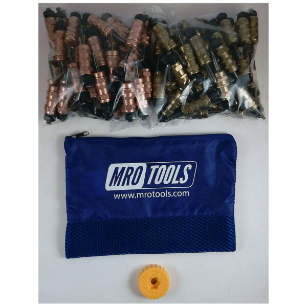 MRO Tools KHN4S100-1 Standard Hex-Nut 50 1/8” & 50 3/16” Cleco Fasteners Kit w/ HBHT Tool & Carry Bag. MRO Tools Cleco Fastener Sets offers incredible value with its durable, polyester carry bag (6” H x 8.5” W) to hold your Clecos and an MRO Tools HBHT Hex-Body Cleco Hand Tool. The MRO Tools HBHT Hex-Body Cleco Hand Tool is a versatile that can both install and remove all Wing-Nut and Hex-Nut style Cleco Fasteners without any need for power tools, pliers and wrenches. This tool is very easy to use, made of durable materials and is made in the USA. MRO Tools Cleco Fasteners are widely used in automotive, racing, and aircraft sheet metal repair. MRO Cleco Fasteners feature a free-wheeling design that allows it to back off while still remaining intact with the body and are designed to temporarily fasten multiple sheets of material together before the pieces are permanently joined. MRO Tools Cleco Fasteners are a simple and inexpensive alternative to competitive fasteners and are available in various lengths and strengths to accommodate different processes.