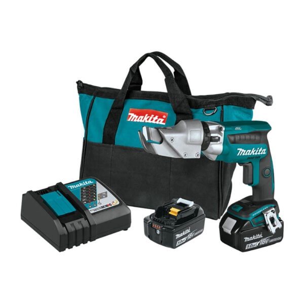 The Makita XSJ04T 18V LXT Lithium-Ion Brushless Cordless 18 Gauge Offset Shear Kit (5.0Ah) is a versatile cutting tool is perfect for professionals in HVAC, metal fabrication, roofing, and other trades. With its powerful performance and cutting-edge features, it is designed to tackle a wide range of cutting applications with ease and precision.