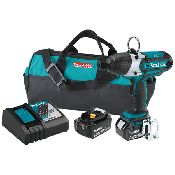 Makita XWT01T 18V LXT Lithium-Ion Cordless Quick Change 7/16” Hex Impact Wrench Kit (5.0Ah) includes: