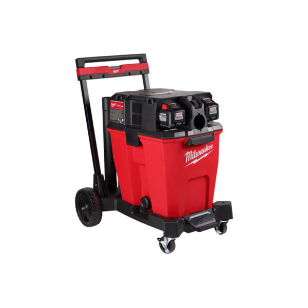 The Milwaukee 0930-22HD M18 FUEL 12 Gallon Dual-Battery Wet/Dry Vacuum Kit includes a Large High-Efficiency Filter, ensuring optimal dust and microparticle collection. Accessory storage on the cart allows for quick and easy access to accessories when you need them most.