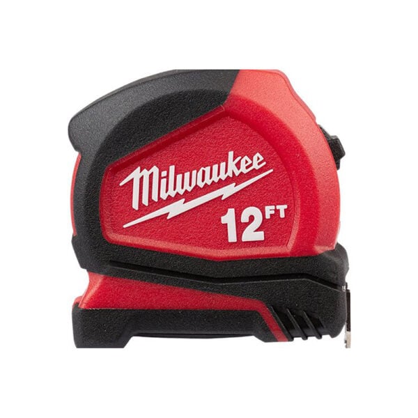 Milwaukee 48-22-6612 Compact Tape Measures 12ft Our Milwaukee 48-22-6612 Compact Tape Measures 12ft have up to 12′ of reach. These tapes are equipped with wear resistant nylon blade protection and an impact-resistant 5-point reinforced frame to withstand the jobsite. An integrated stamped steel belt clip allows you to easily carry the tape measure with you around the jobsite.