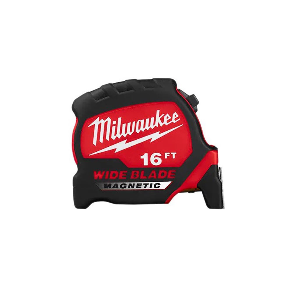 Milwaukee 48-22-6616 Compact Tape Measures 16ft Our Milwaukee 48-22-6616 Compact Tape Measures 16ft have up to 12′ of reach. These tapes are equipped with wear resistant nylon blade protection and an impact-resistant 5-point reinforced frame to withstand the jobsite. An integrated stamped steel belt clip allows you to easily carry the tape measure with you around the jobsite.