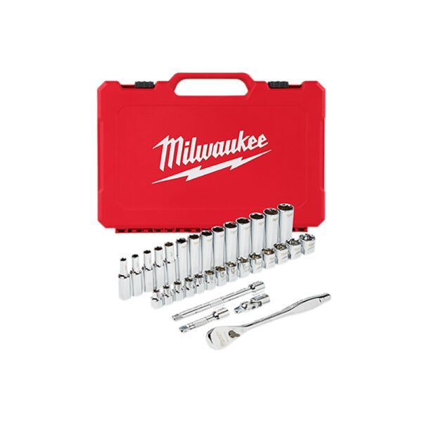 Milwaukee 48-22-9508 3/8” Drive Metric Ratchet & Socket 32PC Set Our Milwaukee 48-22-9508 3/8” Drive Metric Ratchet & Socket 32PC Set is designed from the ground up, offering our users the Most Versatile Sockets that are Anti-Roll and Wrench-Ready. Its innovative FOUR FLAT™ Sides feature an anti-roll and wrench-ready design.