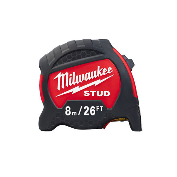 Milwaukee 48-22-9726 STUD Tape Measures 8m/26ft Our Milwaukee 48-22-9726 STUD Tape Measures 8m/26ft are the industry’s most durable tape measure, equipped with innovative EXO360™ Blade Technology. EXO360™ protects your tape’s blade from ripping and wearing, delivering the longest-lasting blade on the market. The tape delivers 17′ of reach* allowing you to take long measurements on your own and reach further on the jobsite.