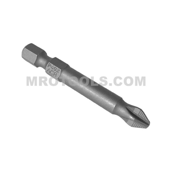 MRO P492ACR #2 Phillips Insert Bit With ACR, 1/4” Hex Power Drive. Point Size: #2 Overall Length: 1-15/16” / 49mm Body Diameter: 1/4” / 6.4mm Turned Length: 1-1/4” / 32mm Apex Equivalent Part Number: 492-ACR2X